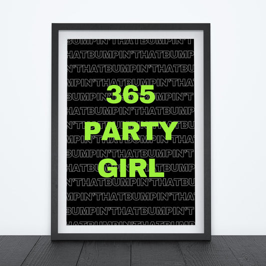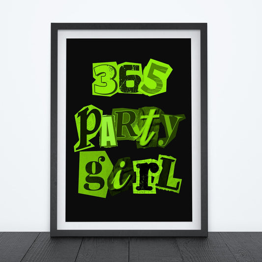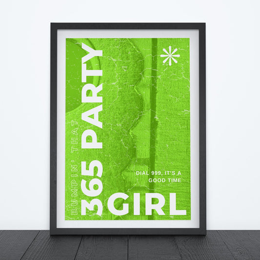 365 Party Girl - 01 Poster: Charli XCX Lyric Quote Print, Brat Summer, Bold Typography Wall Art, Modern Music Decor, Brat Aesthetic, Y2K