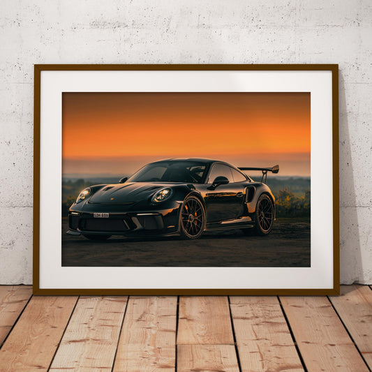 2021 Porsche GT3 RS Poster: Sleek Black Supercar at Sunset Wall Art, Car Print, Luxury car Decor, Gift For Car Lover, Garage & Home Decor