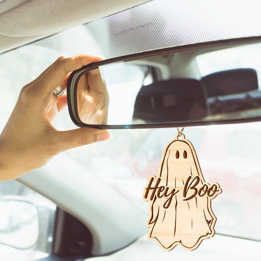 Hey Boo- Wooden Ghost Plaque/Sign For Fall - Cosy Aesthetic, Autumnal Vibes, Minimal, Rustic, Modern Halloween Home Decor & Car Accessory