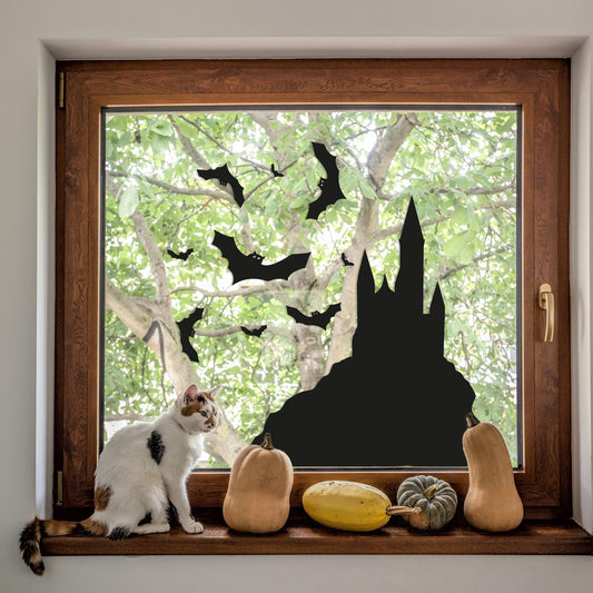 Haunted House Window Sticker: Halloween Decorations, Spooky Window Decal, Silhouette Window Display, Home Decor, Halloween Party Decoration
