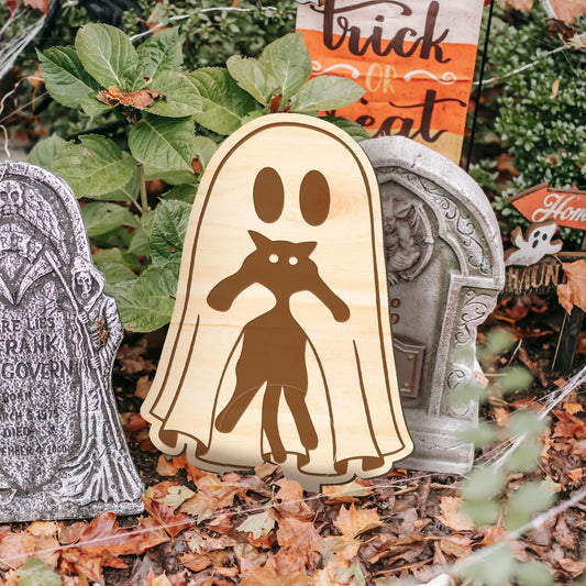 Ghost With Cat Garden Plaque: Halloween Outdoor Decoration, Wooden Garden Decor, Ghost-Themed Decor, Cute Halloween Party Decorations