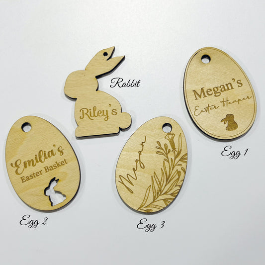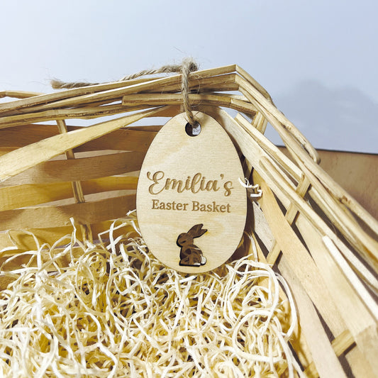 Personalised Wooden Easter Tag Egg Hamper Basket Name Tag Label Basket Tag