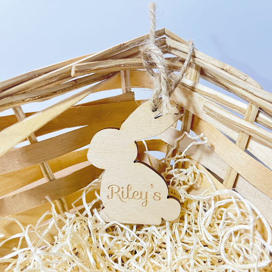 Easter Bunny Basket Name Tag Personalised Wooden Label Basket Tag