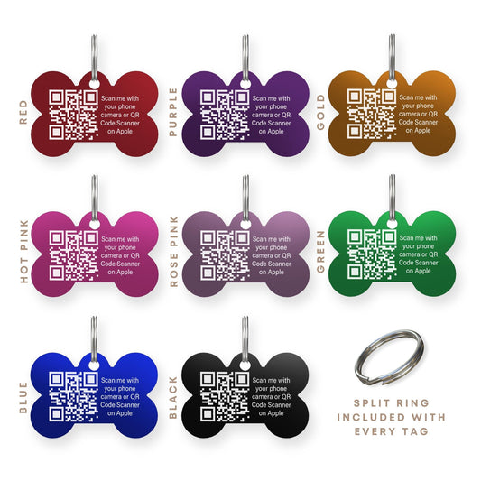 Custom Metal Dog/Cat ID Tags Personalise with QR Code for Extra Security - Premium Engraved Metal Bone Tag - New Dog Puppy Essentials