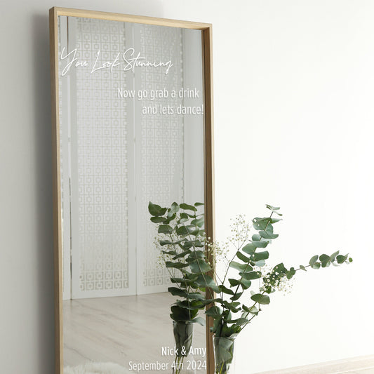 You Look Stunning - Personalised Name And Date DIY Mirror Decal, Wedding Party Decor, Guest Photos & Selfies