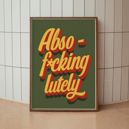 Abso-F*cking-Lutely Retro 70s Style Poster Print Vintage Typography Wall Art Swear Word Quote Print Funky Bold Artwork Home Decor