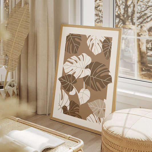 Abstract Beige & White Leaf Poster: Modern Art, Minimal Home Decor, Trendy Wall Art - Aesthetic Print For Bedroom, Entry Way, Living Room