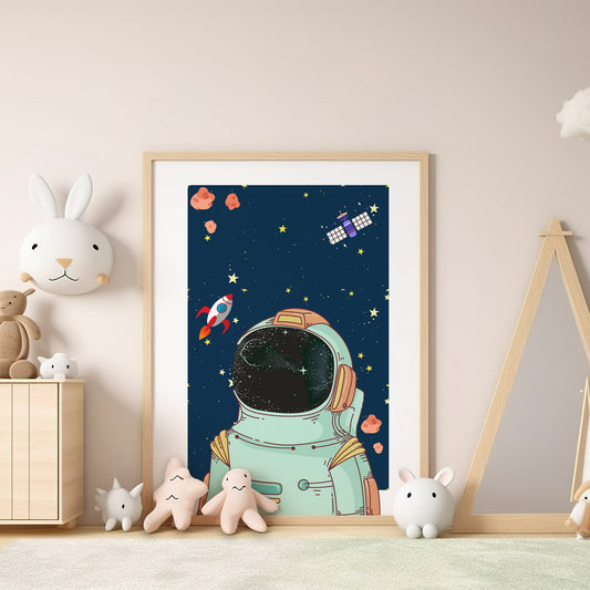 Astronaut Space Man Poster: Illustrated Astronaut Print, Kids Poster, Kids room decor, Nursery Poster, Out of Space Poster, In The Stars