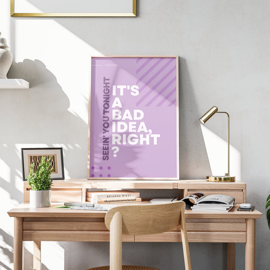 Bad Idea Right? Typography Poster: Olivia Rodrigo Song-Inspired Gloss Print, Quote Poster, Home Decor, Iconic Lyric Print, Music Lover