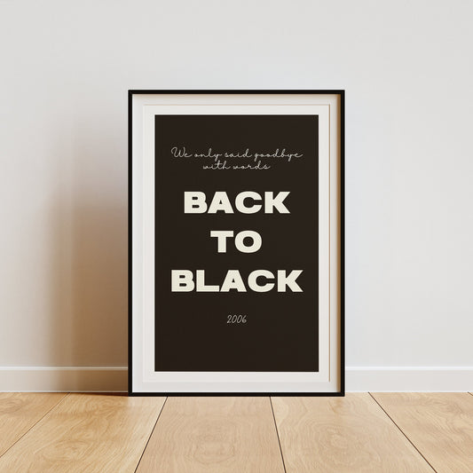 Back To Black Cusive Bold Text Poster - Amy Winehouse Song-Inspired Gloss Print, Quote Poster, Home Decor, Music Lyric Print, Music Lover