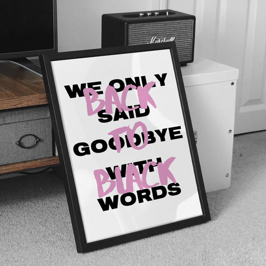 Back To Black Pink Script Design Poster - Amy Winehouse Song-Inspired Gloss Print, Quote Poster, Home Decor, Music Lyric Print, Music Lover