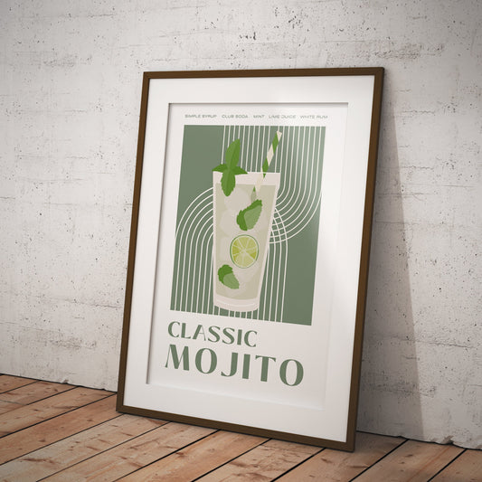 Bauhaus Cocktail - Mojito Poster: Home Bar, Modern Home Decor, Cool Cocktail Print, Kitchen Decor, Wall Art, Cocktail Lover Gift