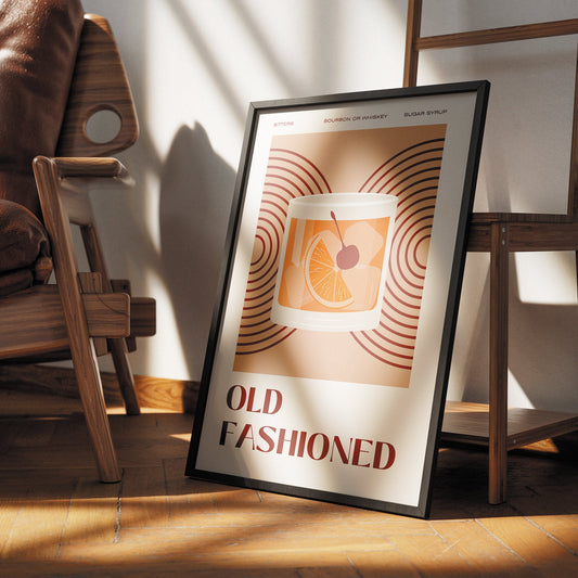Bauhaus Cocktail - Old Fashioned Poster: Home Bar, Modern Home Decor, Cool Cocktail Print, Kitchen Decor, Wall Art, Cocktail Lover Gift