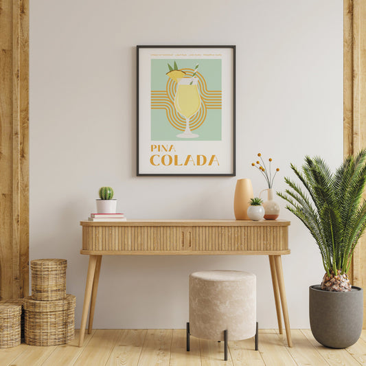 Bauhaus Cocktail - Pina Colada Poster: Home Bar, Modern Home Decor, Cool Cocktail Print, Kitchen Decor, Wall Art, Cocktail Lover Gift