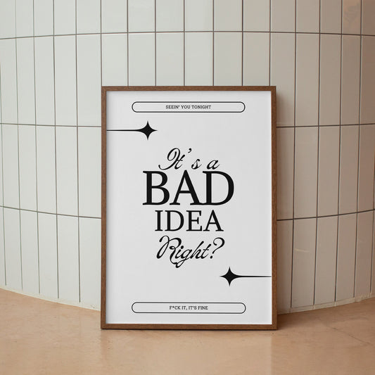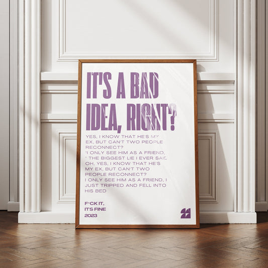 Bad Idea Right? Typography Poster: Olivia Rodrigo Song-Inspired Gloss Print, Quote Poster, Home Decor, Lyric Art, Music Lover, Bold Text