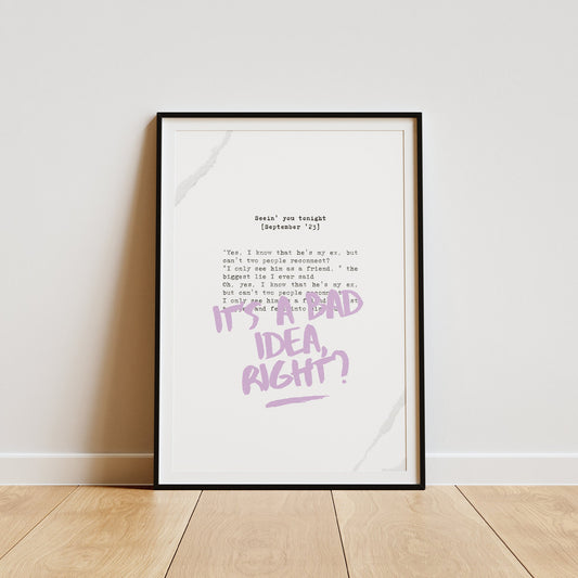 Bad Idea Right? Typography Poster: Olivia Rodrigo Song-Inspired Gloss Print, Quote Poster, Home Decor, Lyric Art, Music Lover, Script Design