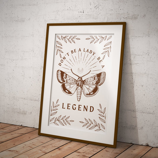 Be A Legend - Moth Poster: Inspirational Stevie Nicks Quote Print, Motivational Wall Art, Feminist Poster, Fleetwood Mac Home Decor