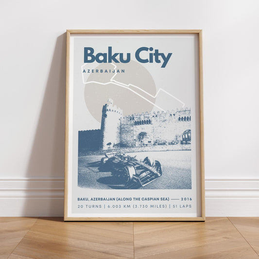 Baku City F1 Circuit Poster: Azerbaijan Grand Prix Track Art Print, Motorsport Wall Decor, Formula 1 Racing Gift, Retro F1 Racing Artwork