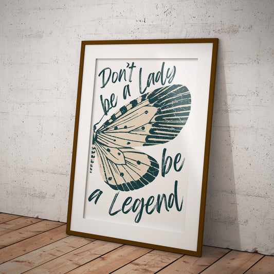 Be A Legend - Moth Wing Poster: Inspirational Stevie Nicks Quote Print, Motivational Wall Art, Feminist Poster, Fleetwood Mac Home Decor