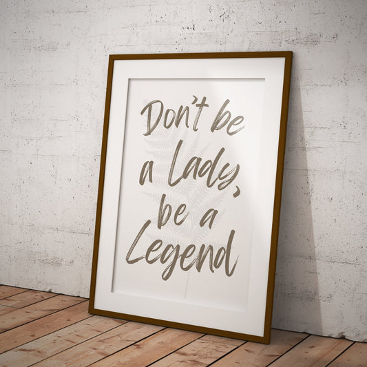 Be A Legend - Script & Fern Poster: Inspirational Stevie Nicks Quote Print, Motivational Wall Art, Feminist Poster, Fleetwood Mac Home Decor
