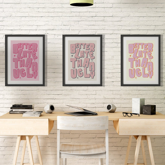 Better Late Than Ugly Print, Home Decor, Gallery Wall Art, Bold Typography, Home Poster, Unique Wall Art, Funny Poster, Joke Print