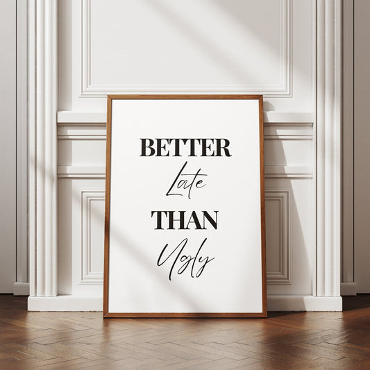 Better Late Than Ugly Fun Print, Home Decor, Gallery Wall Art, Bold Typography, Home Poster, Unique Wall Art, Funny Poster, Joke Print