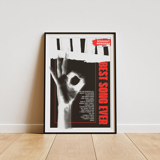 Best Song Ever - 01 Poster: One Direction Lyric Art Print, Perfect Gift for Music Lovers, Teen Room Decor, Music Home Decor, UK Boy Band