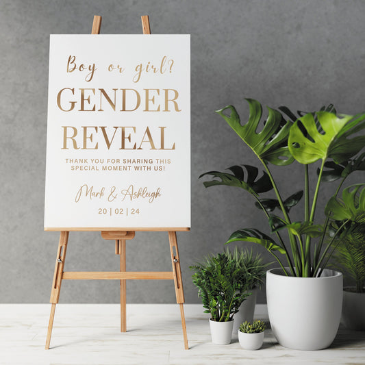 Boy or Girl Gender Reveal Sign - Personalised Baby Gender Reveal Party Decor, He or She baby shower Sticker Decal, Party Decor Sign