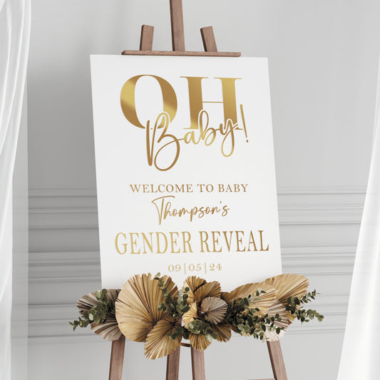 Oh Baby Gender Reveal Sign - Personalised Baby Gender Reveal Party Decor, Boy or Girl, He or She baby shower Sticker Decal, Party Decor Sign