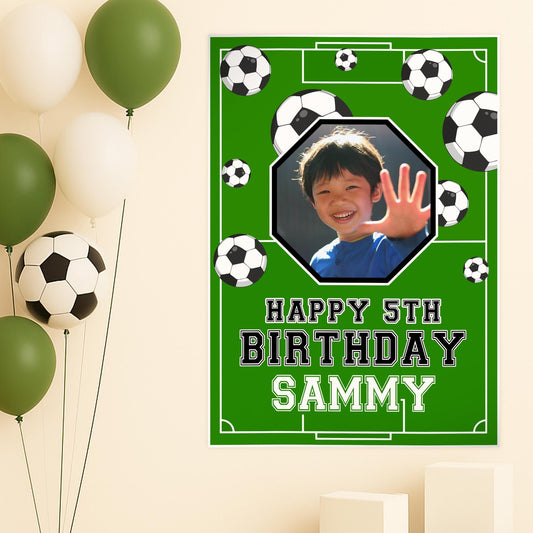 Personalised Football Birthday Banner: Custom Photo Poster with Name & Age Pitch Design Sports Themed Party Decor for Boys A3 or A2