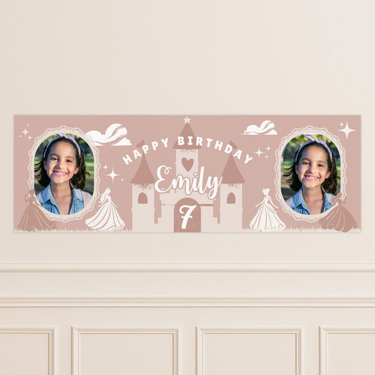 Personalised Princess Birthday Banner for Girls | Custom Name & Age Birthday Sign | Pink Party Decor | Custom Fairy Tale Birthday Banner