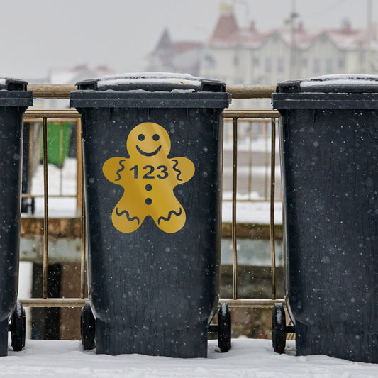 Gingerbread Man Wheelie Bin Sticker - Personalised Sticker Custom Number House Number Christmas-Themed Bin Decal, Seasonal Home Decor