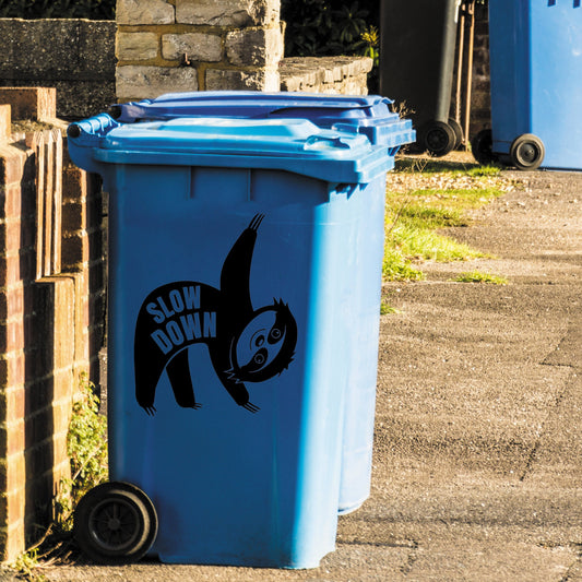 Slow Down Traffic Control Sloth Wheelie Bin Sticker - Slow Down, 20mph, 30mph Funny Cartoon Animal - Speed Limit Awareness Decals