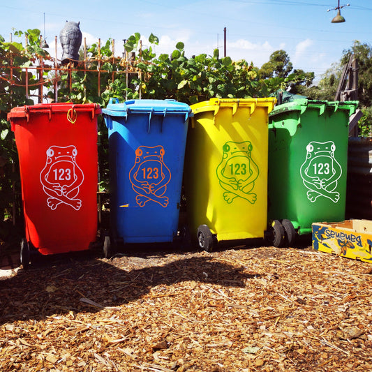 Sitting Frog Wheelie Bin Sticker, Personalised Sticker For Bin, Frog Inspired Design, House Number Sticker For Bin, Vinyl Bin Sticker