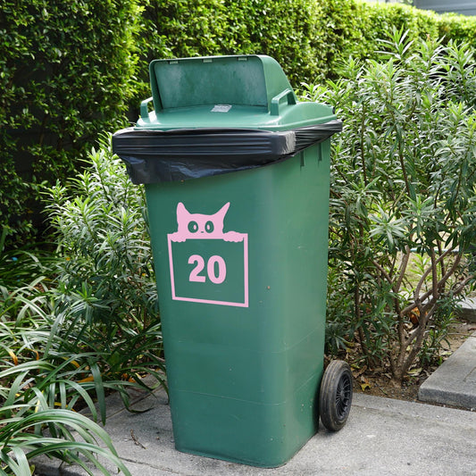 Personalised Peeking Cat Bin Sticker: Custom Wheelie Bin Decal with House Number - Cute Outdoor Decor, Funny Cat Sticker for Dustbin