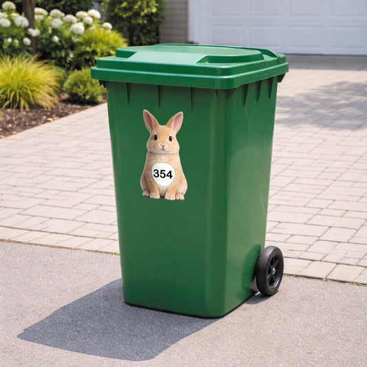 Personalised Wheelie Bin Sticker | Cute Rabbit House Number Bin Decal | Waterproof Vinyl Dustbin Label