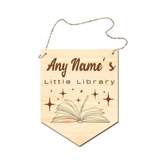 Little Library Wooden Sign - Personalised Sign, Home Decor For Kids Bedroom & Playroom, Story Book Themed Plaque, Reading Corner, Book Shelf