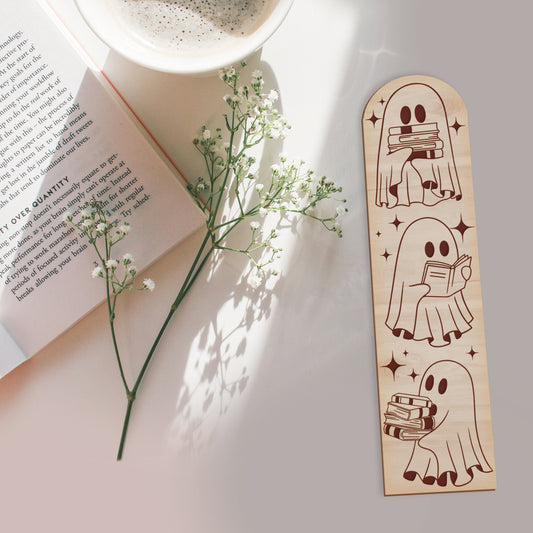 Ghost Bookmark - Ghost Bookmark Gift, Engraved Wooden Autumnal / Fall Book Accessory For Book Lovers & Readers, Cute Halloween Book Gift