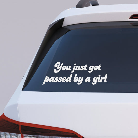 Passed By A Girl - Retro: Girly Car Sticker, Cute Car Accessory, Funny Overtake Bumper Vinyl Decal, Window Sticker, Quote Sticker For Her