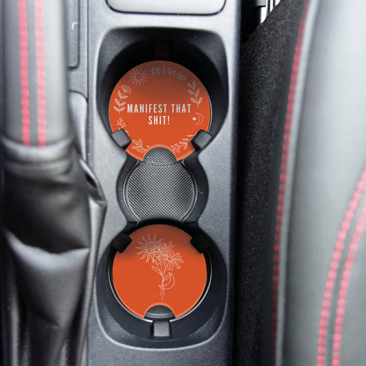 Manifest That Sh*t, Car Coaster Set for Positive Vibes on the Go!, Gift For Her, Gift For Car Lover, Acrylic Car Coasters