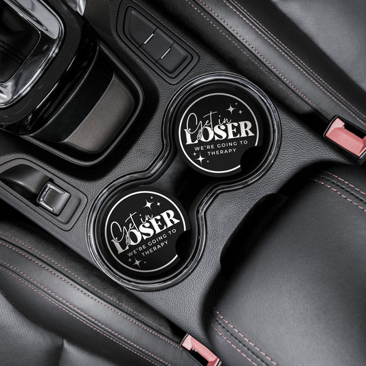 Therapy Car Coasters Set: Get In Loser Cup Holder Drinks Mat, Girly Car Gift, Car Lover, Quirky Car Accessories, Funny Cute Gift For Her