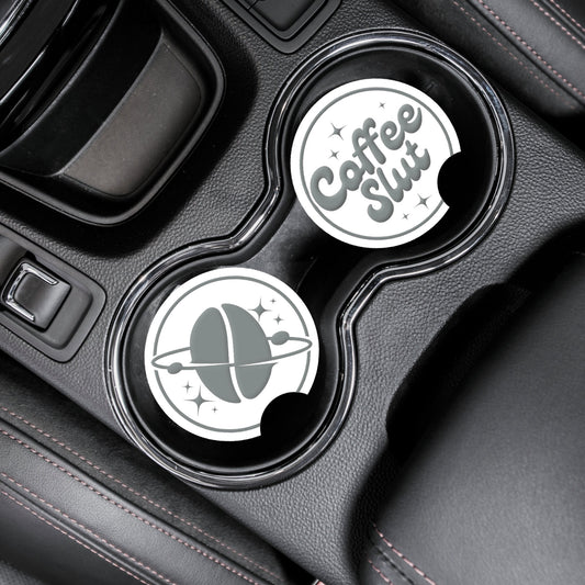Coffee Slut Car Coaster Set: Cup Holder Drinks Mat, Girly Car Accessory, Car Lover, Funny Coffee Quote, Coffee Lover, Cute Gift For Her
