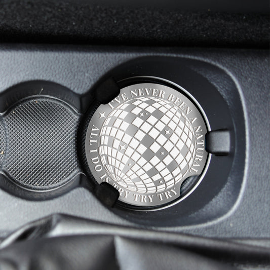 Never Been A Natural - Car Coaster Set: Mirrorball Decor, Music-Inspired Mirrored Acrylic Car Coasters, Girly Car Accessory, Gift For Her