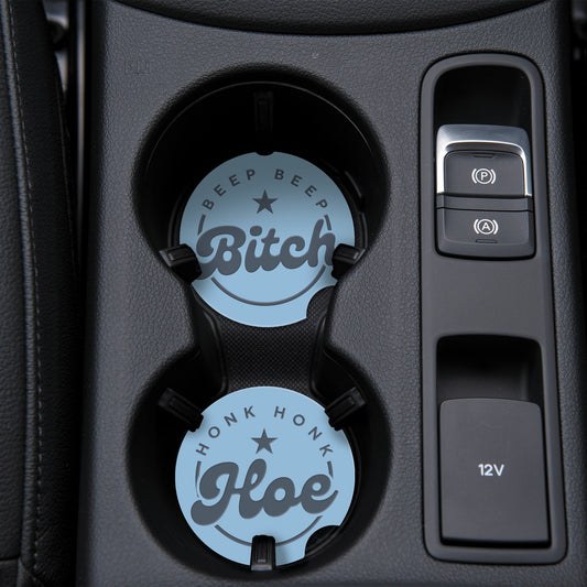 Beep & Honk Car Coaster Set: Funny Girly Acrylic Car Coasters, Cup Holder Drinks Mat, Car Accessory, Car Lover, Cute Gift For Her