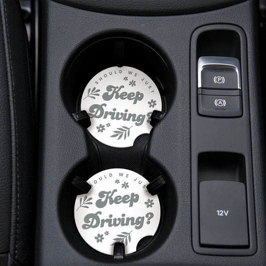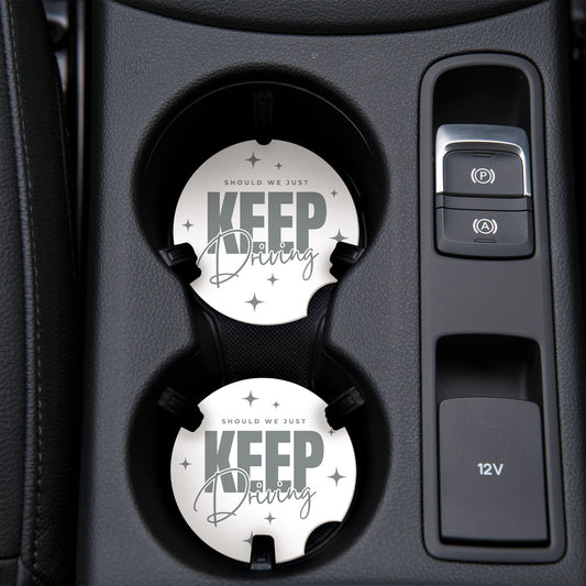 Keep driving - Script & Stars Car Coaster Set: Harry Styles Lover Gift, Girly Car Accessory, Cup Holder Insert, Cute Gift For Her