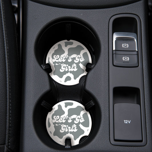 Let's Go Girls - Cow Print Car Coaster Set: Girly Car Accessory, Cup Holder Insert, Cowgirl Vibes, Aesthetic Car Interior, Cute Gift For Her