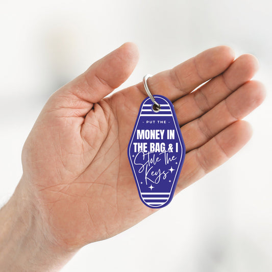 Money In The Bag - Retro Keyring: Girly Car Accessory, Acrylic Motel-style Keychain, Getaway Car, Gift Idea, Song-Inspired Keychain
