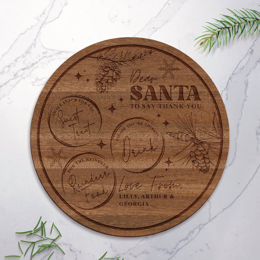 Christmas Eve Santa Tray - Personalised Wooden Santa Claus Treat Board, Xmas Milk & Cookie Plate, Night Before Christmas Treats For Santa