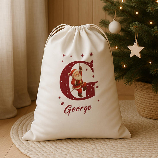 Personalised Santa Sack | Custom Initial Christmas Santa Gift Bag