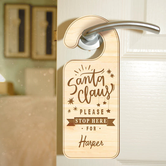 Personalised Santa Stop Here Door Hanger Sign - Custom Name Bedroom Christmas Eve Door Decoration For Kids, Xmas Home Decor For Children